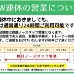2026年4月15日 / 最終更新日時 : 2026年4月21日 AEGYM INFORMATION GW連休中の営業について 日頃よりAEGYMをご利用頂き誠にありがとうございます。GW連休中の営業についてお知らせいたします! AEGYMは、GW連休中におきましても変わらず24時間のご利用が可能です!下記の通り、期間中はノースタッフデイとなる日 […]