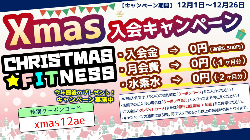 AEGYMでは12月中【期間限定】で入会キャンペーンを実施します!